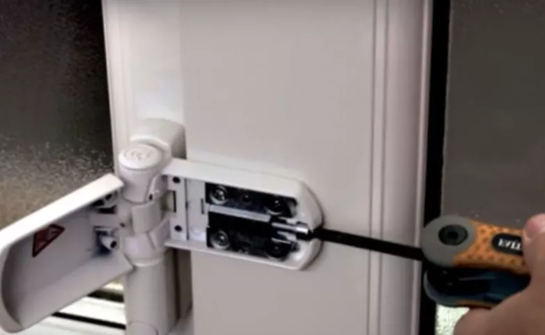 В такому разі треба працювати з нижньою петлею. У ній є вертикальний регулювальний гвинт. Вставляєте шестигранник — і поворотами за/проти годинникової стрілки змінюєте висоту. Часто достатньо повернути буквально на півоберта.